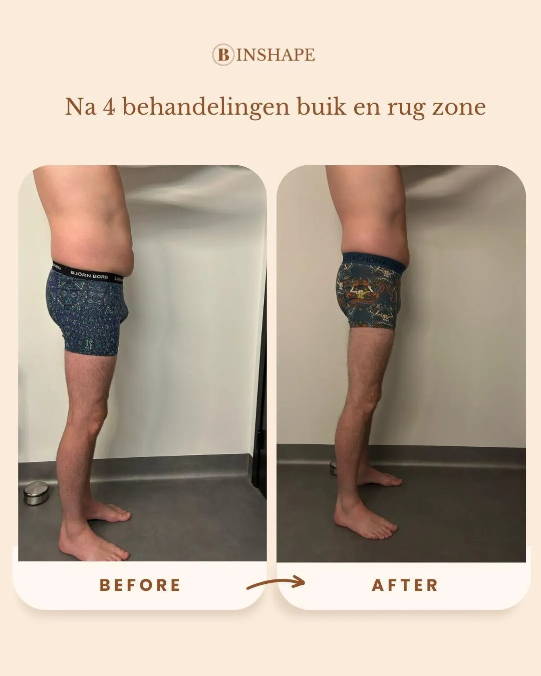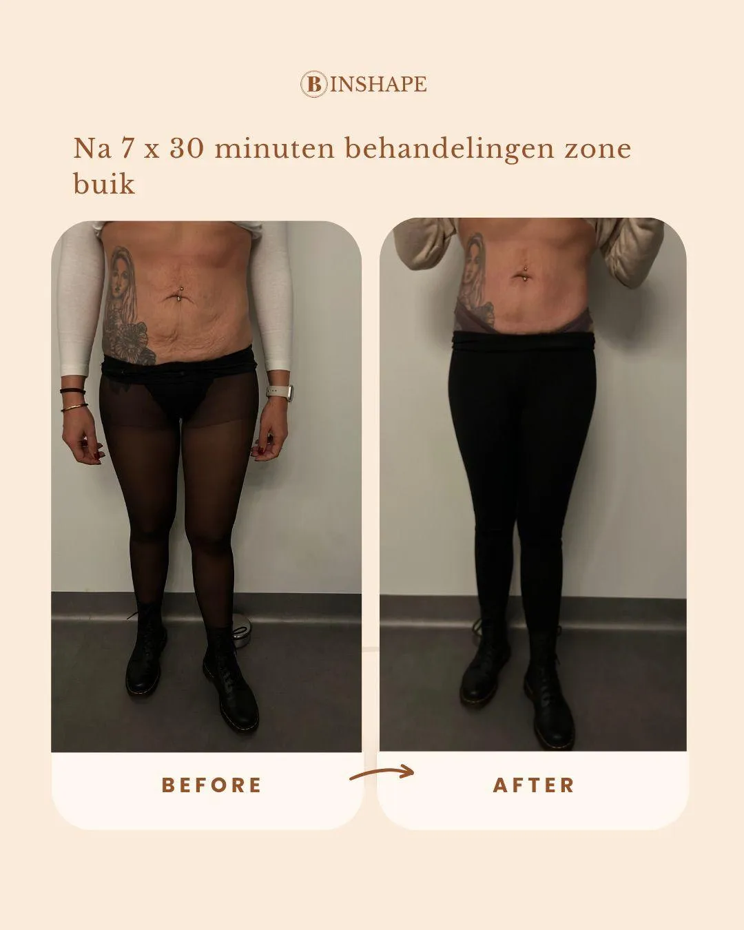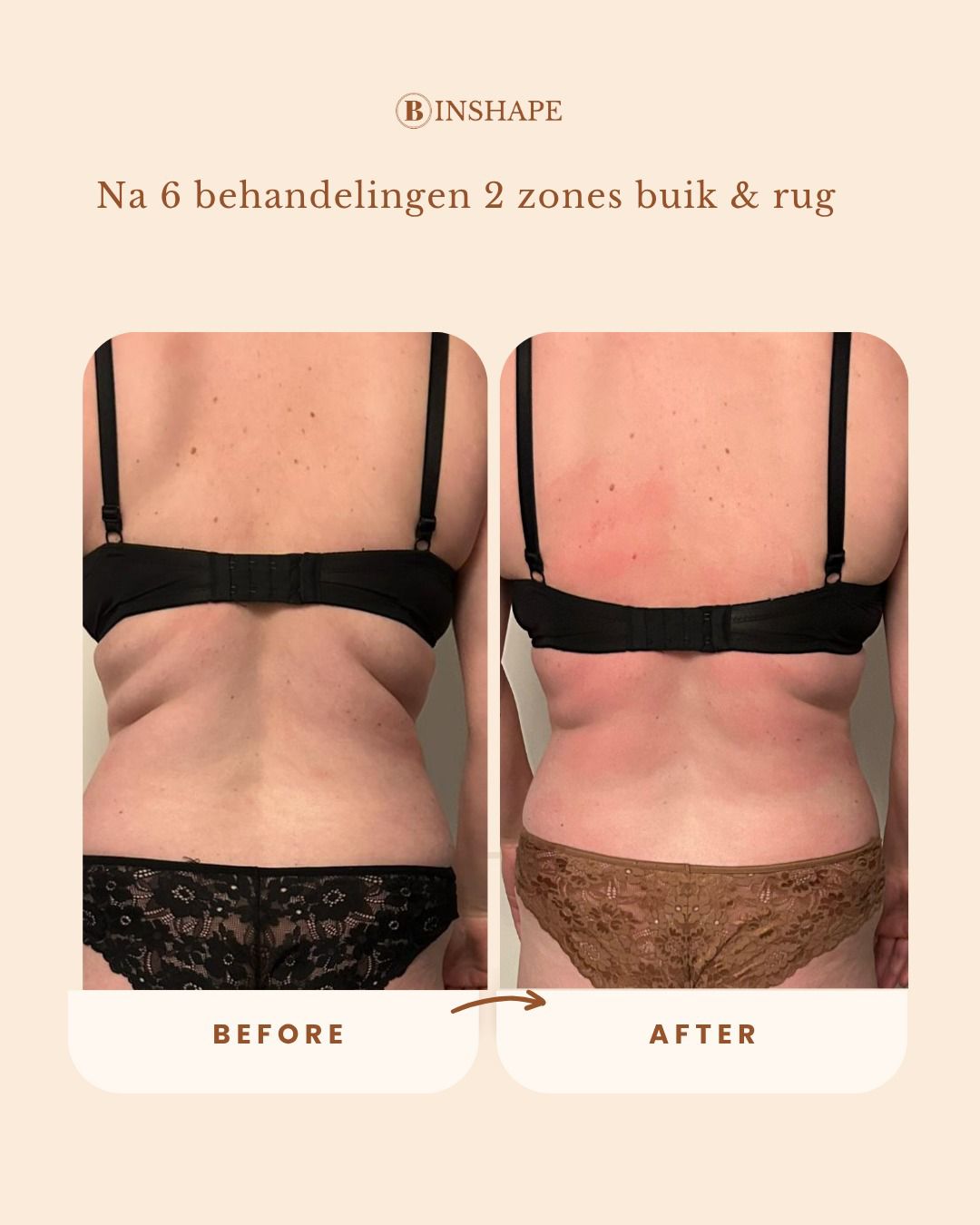 ''Ik heb inmiddels 5 behandelingen gehad bij B Inshape en ben super tevreden over het resultaat! Na twee zwangerschappen kort op elkaar was mijn buik niet wat het was en zaten er veel verklevingen die ik met sporten niet aangepakt krijg. Alles wordt duidelijk uitgelegd en je wordt echt meegenomen in het proces. Ze is eerlijk, denkt met je mee en gaat voor het best mogelijke resultaat. Je voelt je meteen op je gemak en merkt dat ze echt verstand van zaken heeft. Ik ben heel blij dat ik hiervoor gekozen heb – absoluut een aanrader! - Eefje van Grinsven