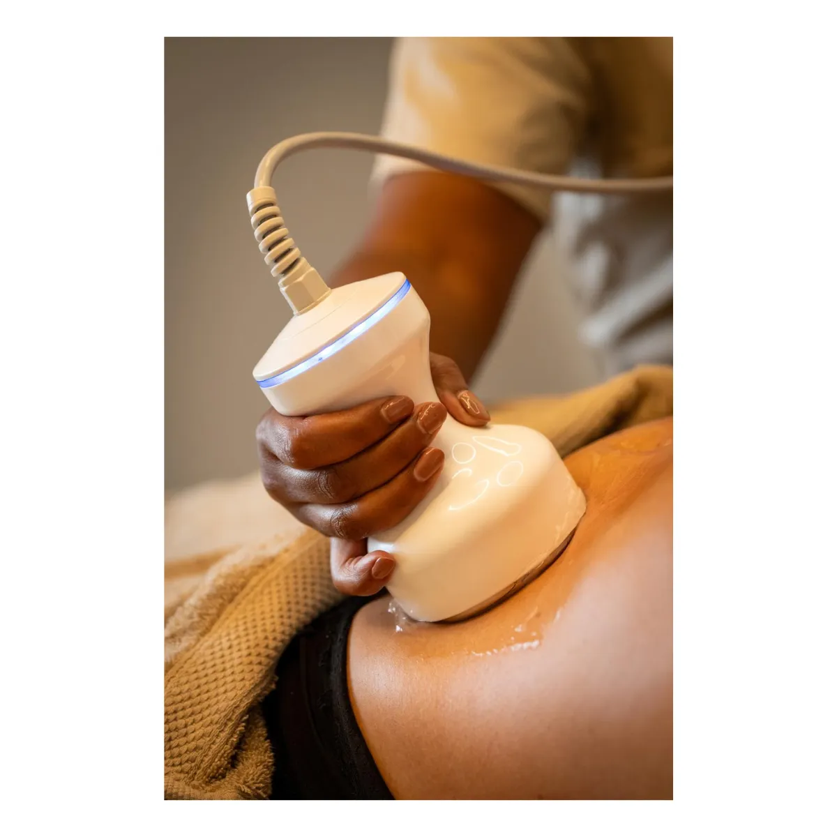 Gericht op vetafbraak en huidverstrakking. Geluidsgolven dringen diep door in de huid en helpen bij het afbreken van vetcellen. Deze worden vervolgens op natuurlijke wijze door het lichaam afgevoerd. Ultrasound stimuleert daarnaast de aanmaak van collageen, wat zorgt voor een strakkere en gladdere huid.